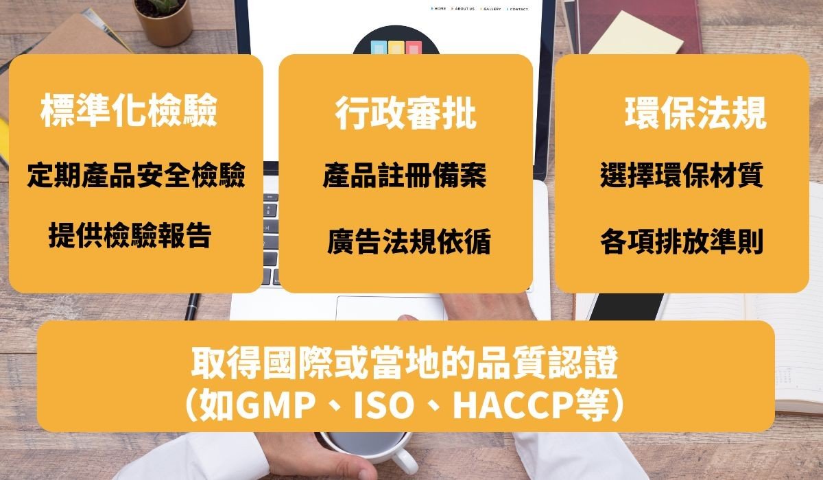 取得國際或當地的品質認證(如GMP、ISO、HACCP等)能夠增強品牌在市場上的可信度。