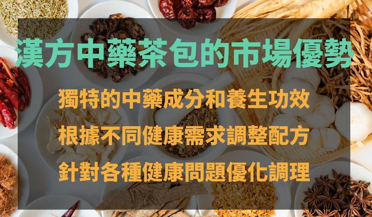 漢方中藥茶包與傳統的健康飲品如果汁、運動飲料相比,具有獨特的中藥成分和養生功效,在飲品市場上具有不一樣的競爭優勢。漢方中藥茶包能根據不同的健康需求進行配方調整,並針對各種健康問題優化調理身體狀態,在健康飲品市場中獨樹一幟、越來越多產業投入茶包代工。
