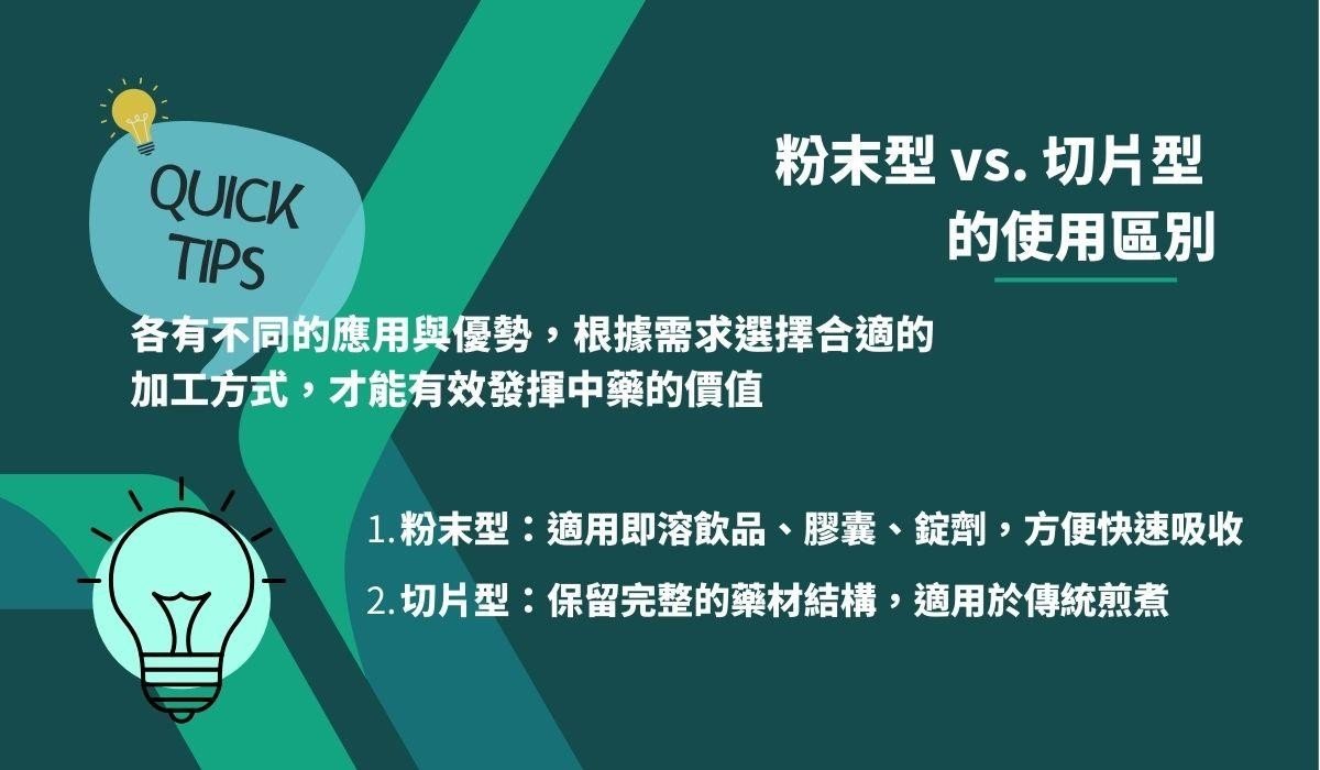 粉末型、切片型各有不同的應用場景與優勢,根據產品需求選擇合適的加工方式,才能更有效發揮中藥的價值。