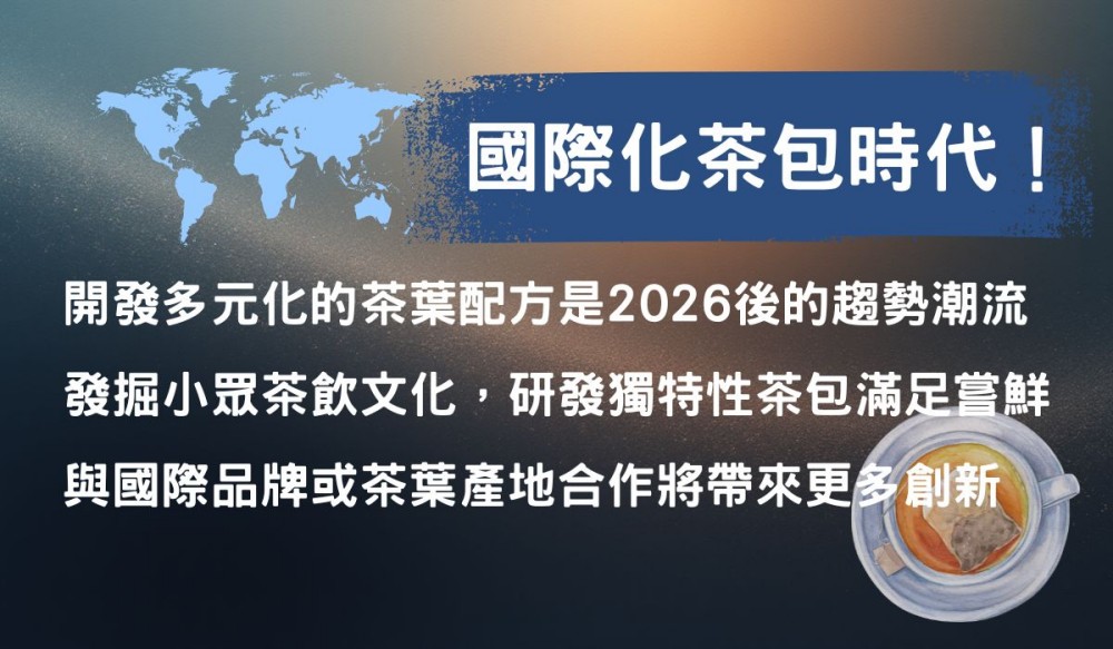 2026年的茶包代工是一場結合健康、環保、科技與創新的產業革命!代工廠不只是代工,更需緊跟茶包市場趨勢,提升研發能力、環保技術與生產效率,以應對未來的挑戰與機遇。