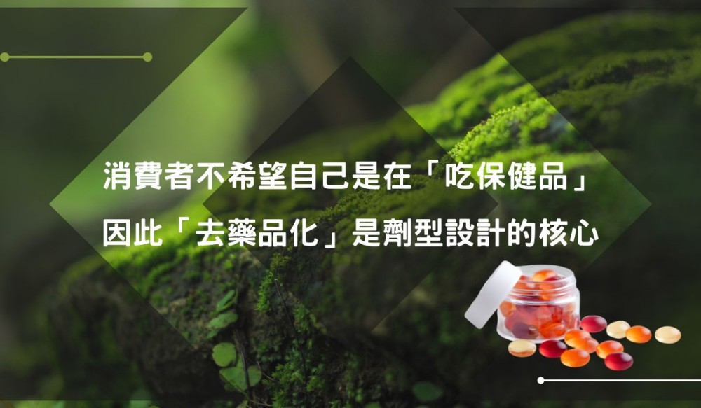 消費者不希望自己是在「吃保健品」。因此「去藥品化」是劑型設計的核心。